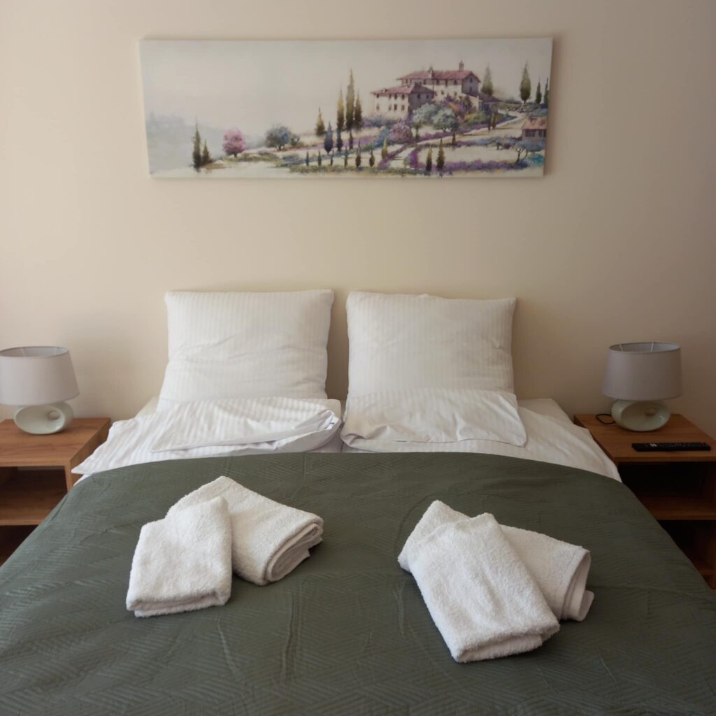 • 1 pokój z łóżkiem małżeńskim, drugi pokój dwa pojedyncze